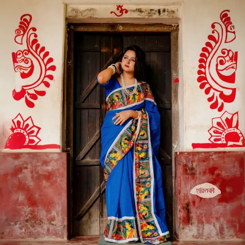 Nilgantha Print Half Silk Saree