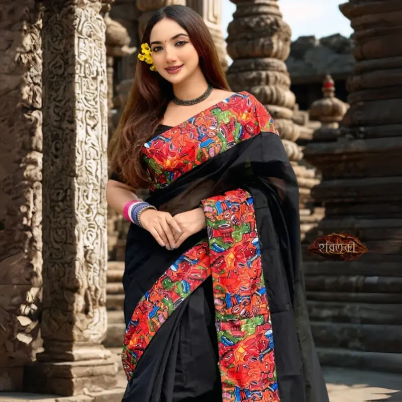Black Alpona Art Saree